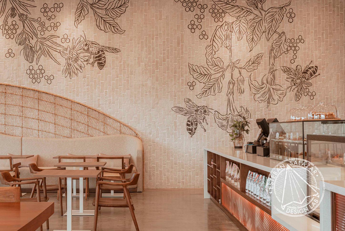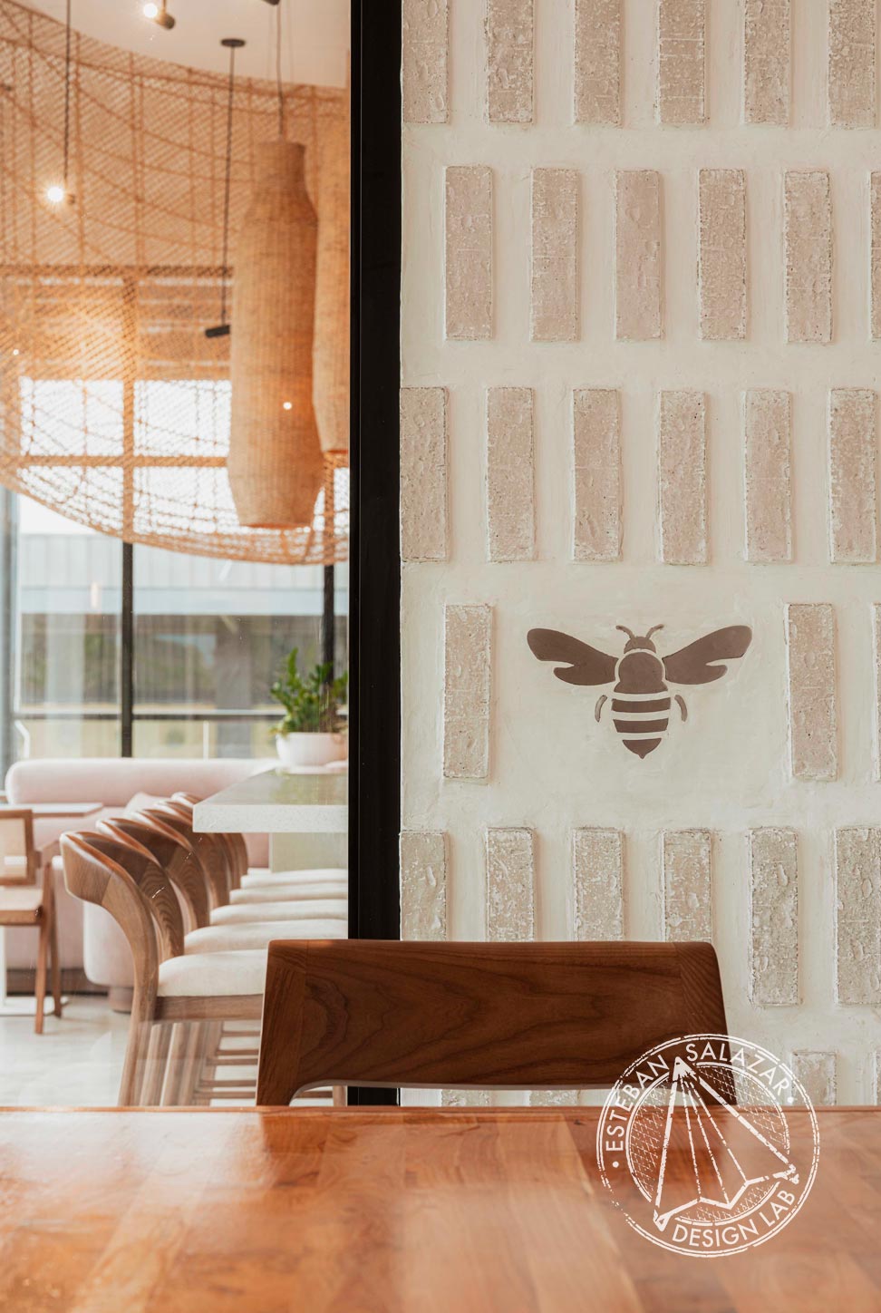 Neutral tones, natural fibers, and sculptural forms converge to cultivate an atmosphere of quiet harmony. Every detail pays poetic homage to the world of bees, transforming the space into a multisensory narrative. Here, design transcends function — it becomes storytelling in its purest form.