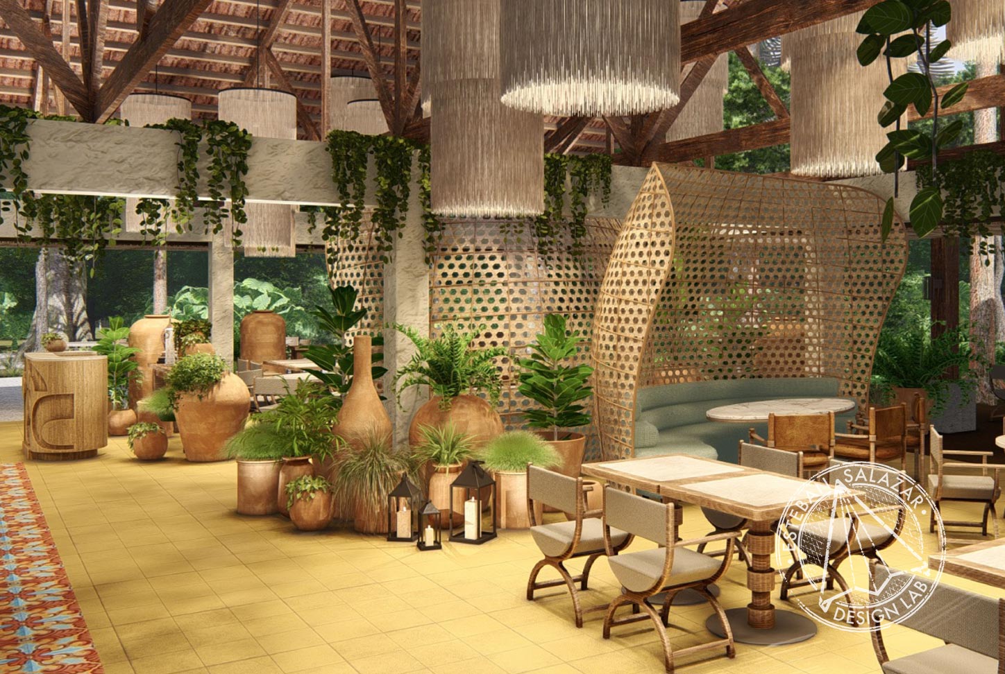 Santa Lucía Jungle Hacienda unfolds as a sanctuary where heritage and wilderness exist in quiet harmony. Under Design Lab’s creative direction, the project focused on the reimagining of the main building and its social spaces—including the lobby, restaurant, terraces, pool, snack bar, and kids club—crafting a seamless and immersive guest experience.