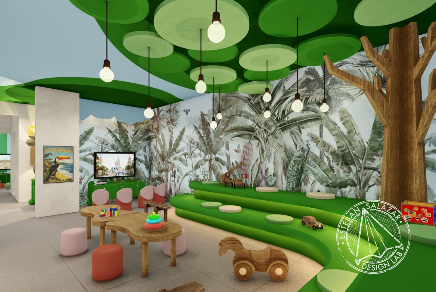 Alongside the main spaces, Design Lab led the creation of the new Deluxe Suites, inspired by Costa Rica’s indigenous huts, allowing the architecture, materials, and atmosphere to evoke a sense of belonging. The intervention also extended to character-driven spaces such as La Cantina, La Galería, and El Cabildo—conceived as a pueblo-inspired composition that reinforces a strong sense of place, warmth, and community.